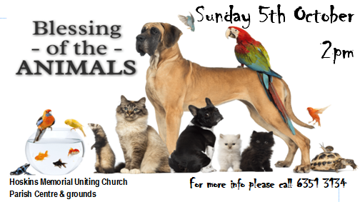 Following on from Francis of Assisi Day, who was the Patron Saint of animals, we welcome you to bring your pets along to Hoskins Parish Centre & gardens to be blessed.